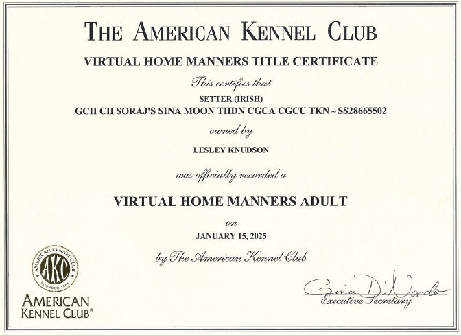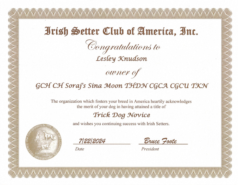 All training is done with positive reinforcements and much patience in preparation for Service., Therapy, or Confirmation training. At Dearg na hEireann we love our Irish and will only provide the best of care and handling. Sales are closely monitored to only the those families who can provide an excellent home and recognize that Irish Setters need to work.